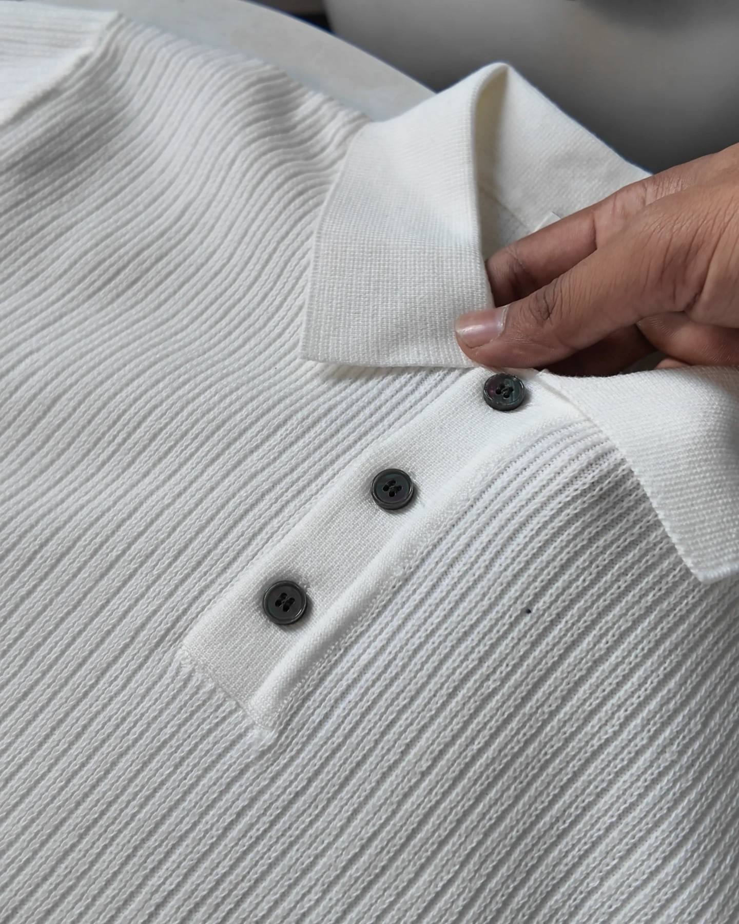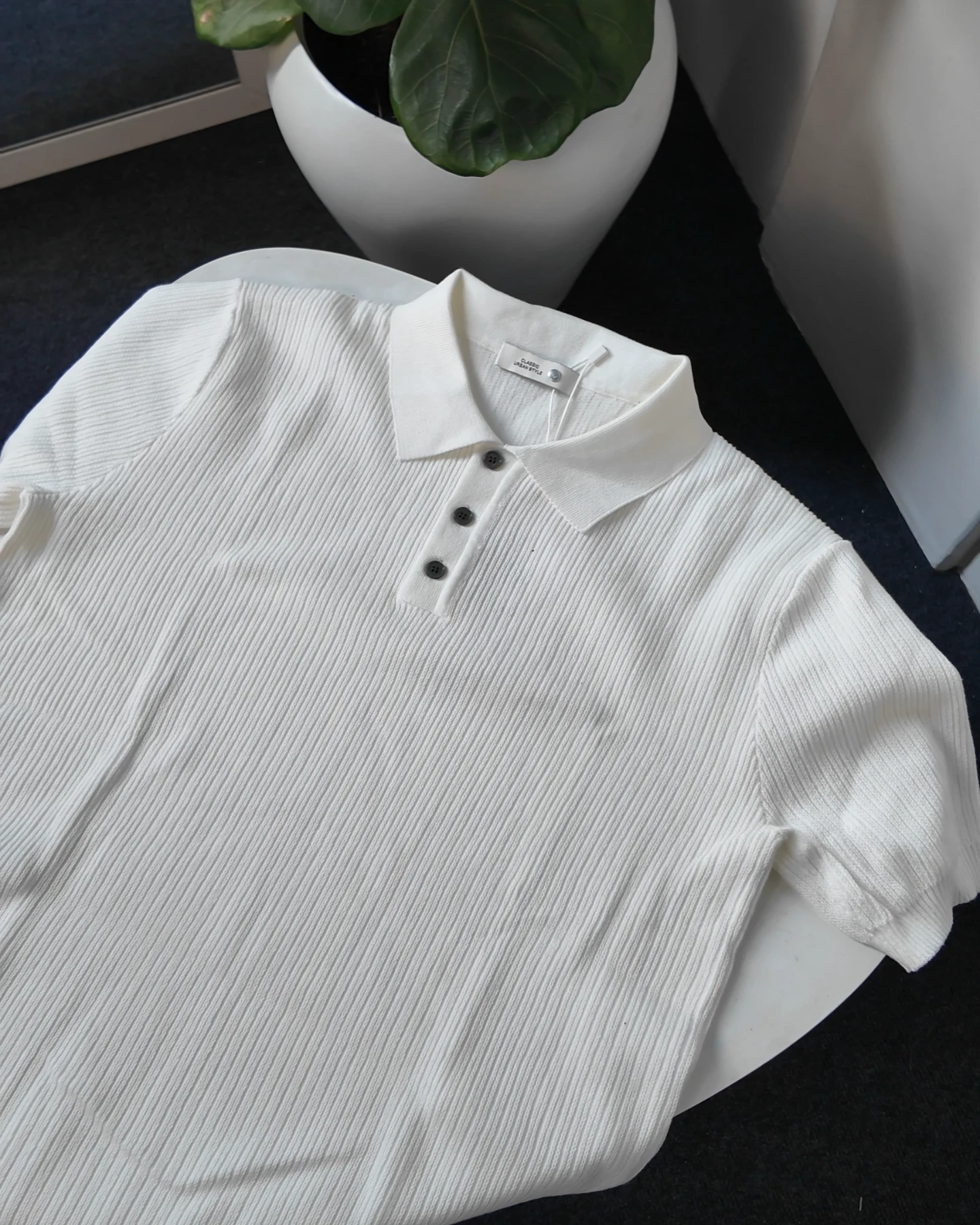 Designed with a refined ribbed texture and structured collar, this polo tee gives a clean smart-casual look perfect for daily wear, meetings, or outings.